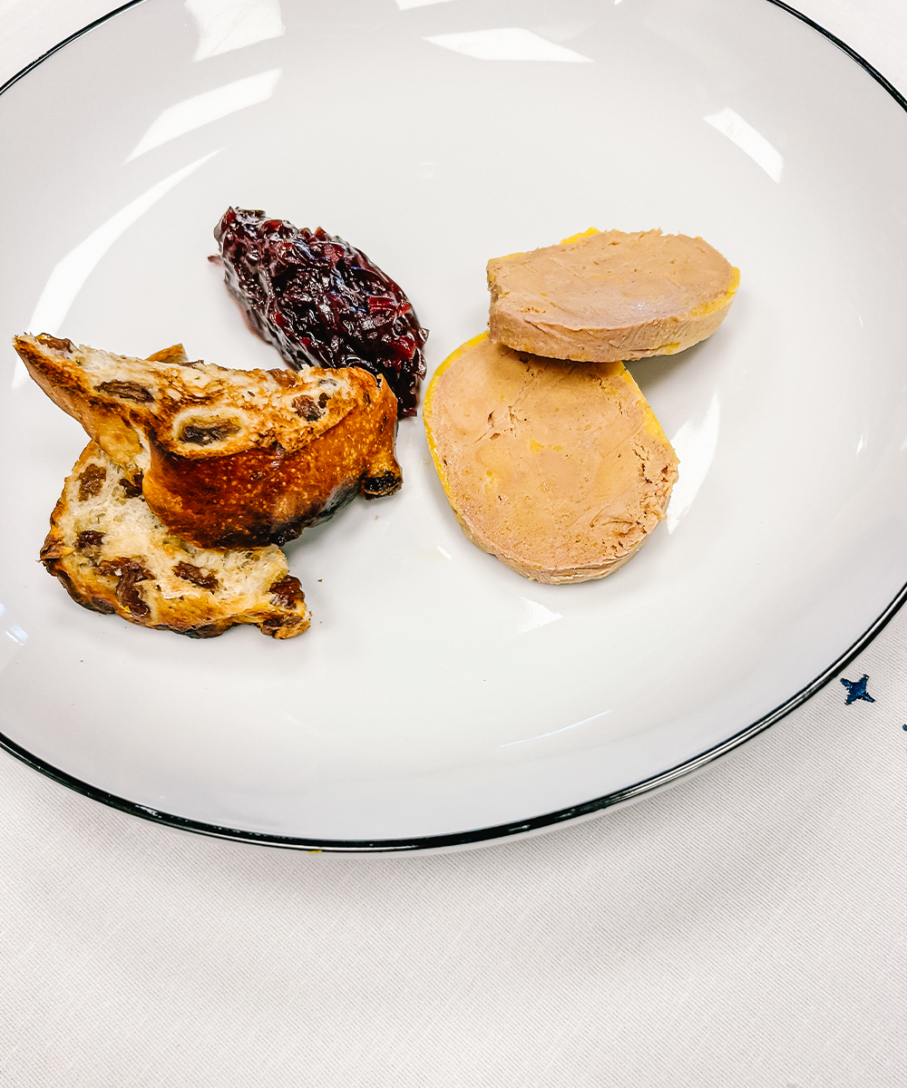 Terrine van ganzenlever / chutney van ui en vijg / rozijnenbroodje